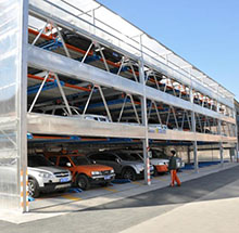 垂直升降類車庫又名塔式立體停車庫 , 在垂直方向依靠提升機升降而在水平方向上依賴于升降機上